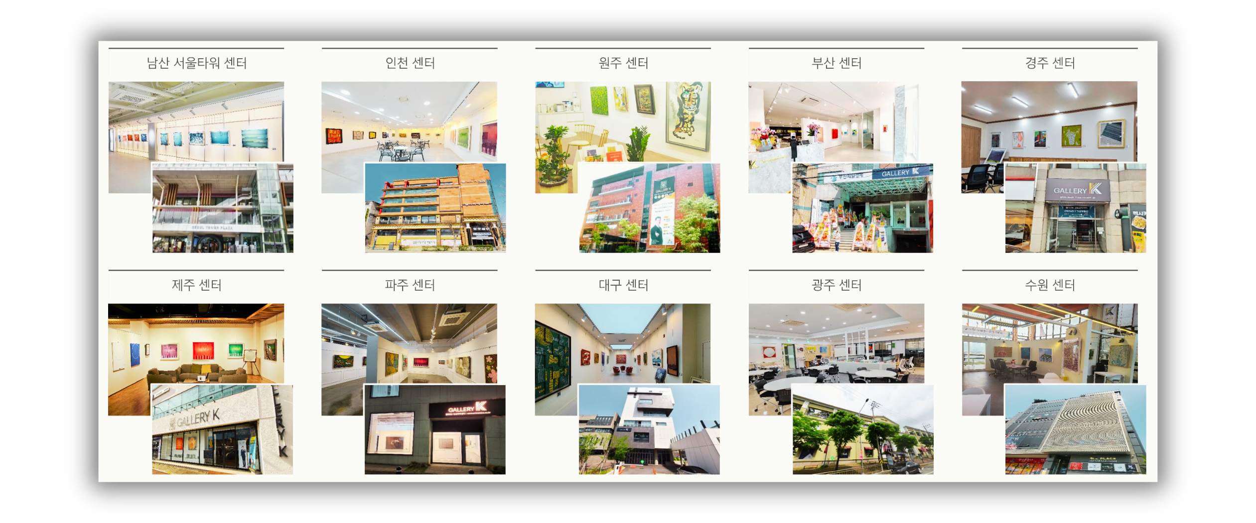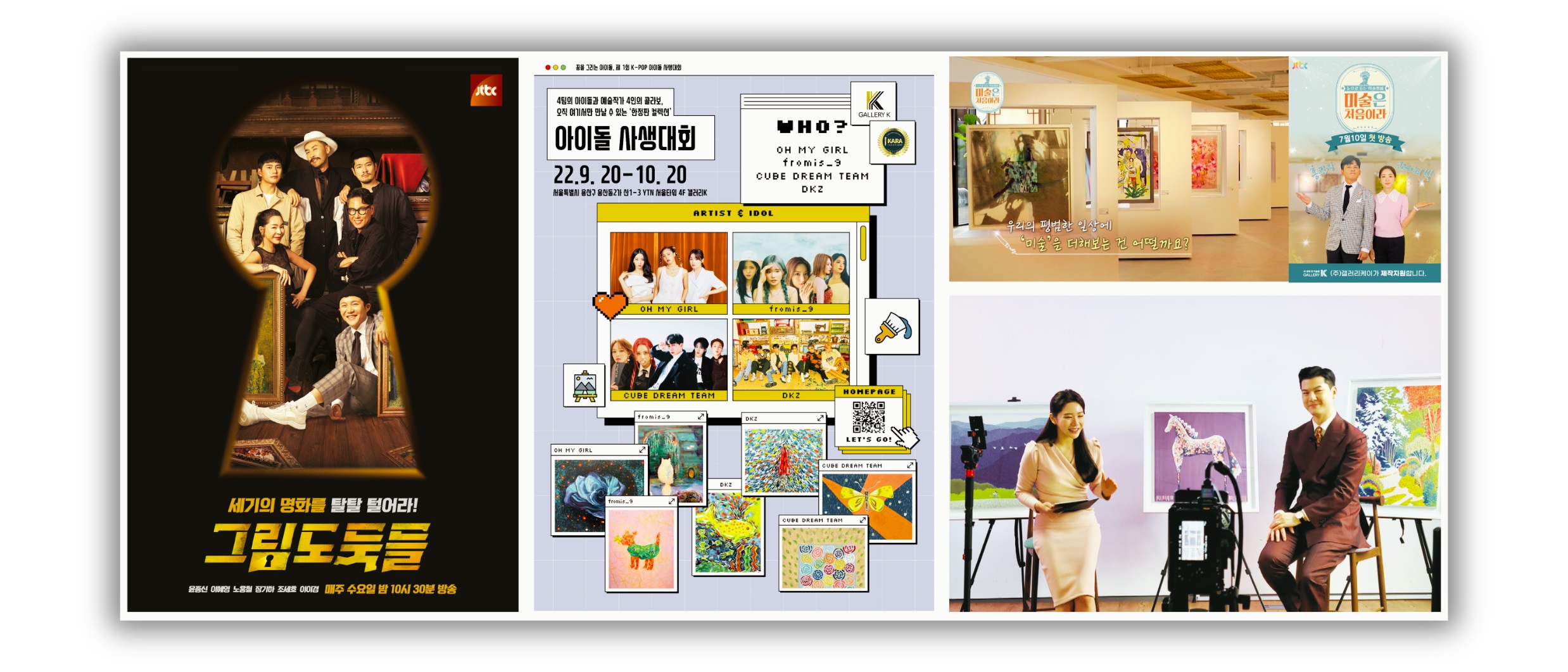 작품가는 작가의 활동성, 인지도 및 최근 거래가격 뿐만 아니라 갤러리의 적극적인 지원 여부에 따라서도 달라집니다. 갤러리K는 드라마, 방송협찬(PPL), 홈쇼핑광고 뿐만 아니라 다양한 개인전과 아트페어 참가를 통해 제휴 작가의 가치를 높이기 위해 최선을 다하고 있습니다.